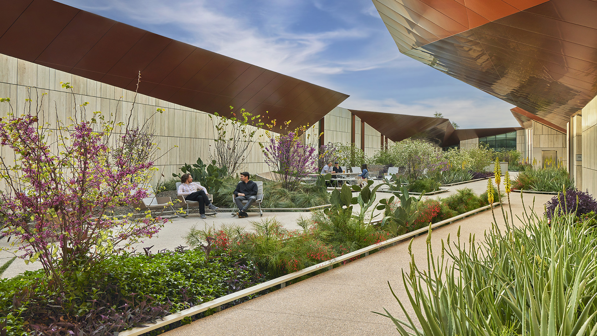 Evoking the natural geology of Arizona, the hardscape is sculpted in response to climate, orientation, and urban influences; protectively embracing diverse environments for people to congregate and share ideas. The integration of energy and water-conscious design, dynamic landscapes, and public art, results in a physical expression of sustainable and resilient design in the urban Sonoran Desert.